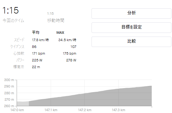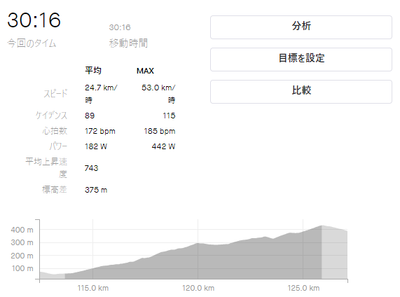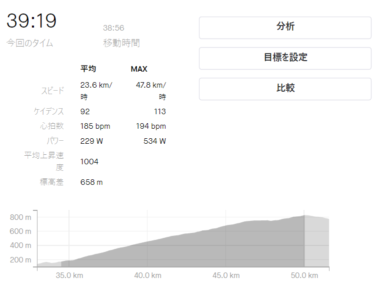 最後の登坂は強度がテンポ走ですが、死ぬほどきつかったです(笑)。